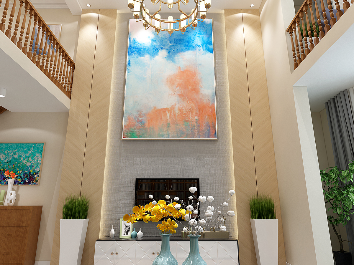 此戶型采用簡約的現代設計風格,因為原戶型除了外墻沒有格局布置,布局需要全部重新設計,在結構上進行改動,加建二層打造復式結構。后期在家具、配飾上做了精心的布置。客廳地面選用米黃色淺色玻化磚,讓居室現得干凈利落。墻面用筒燈的燈光渲染,給人一種朦朧的意境美。尤其是電視背景墻和掛畫,體現了現代低調的風格。整體風格莊重而不失溫馨。