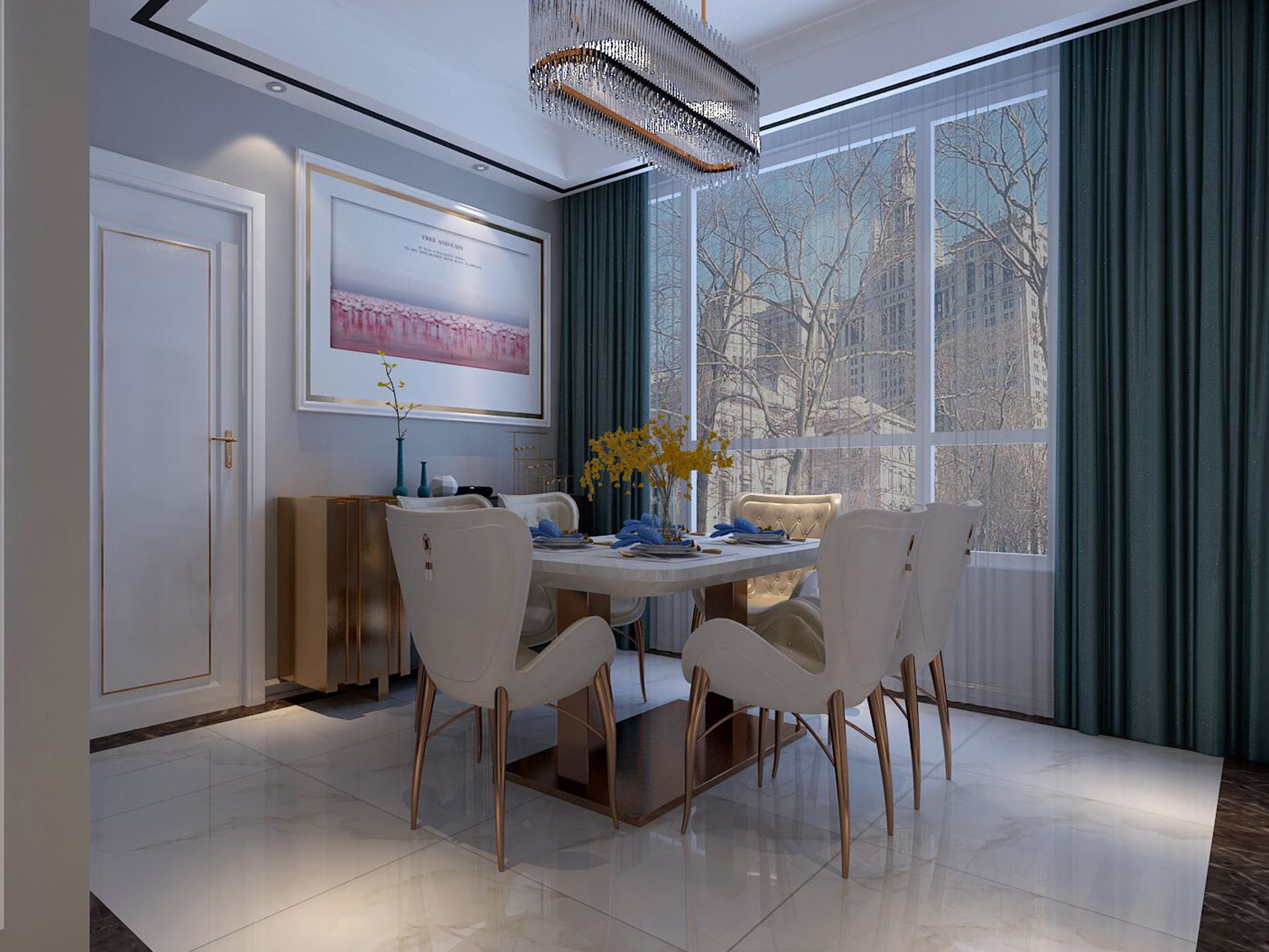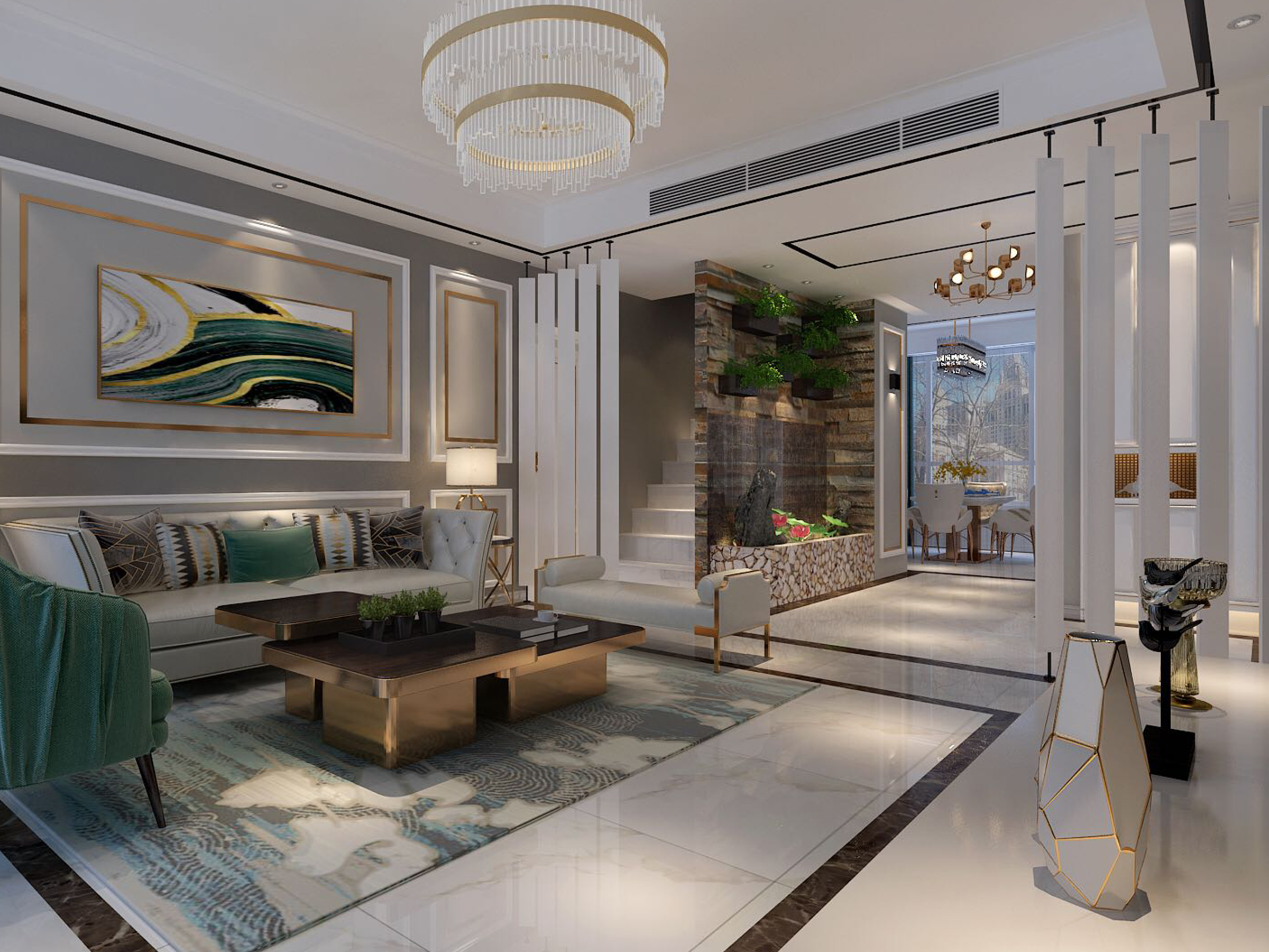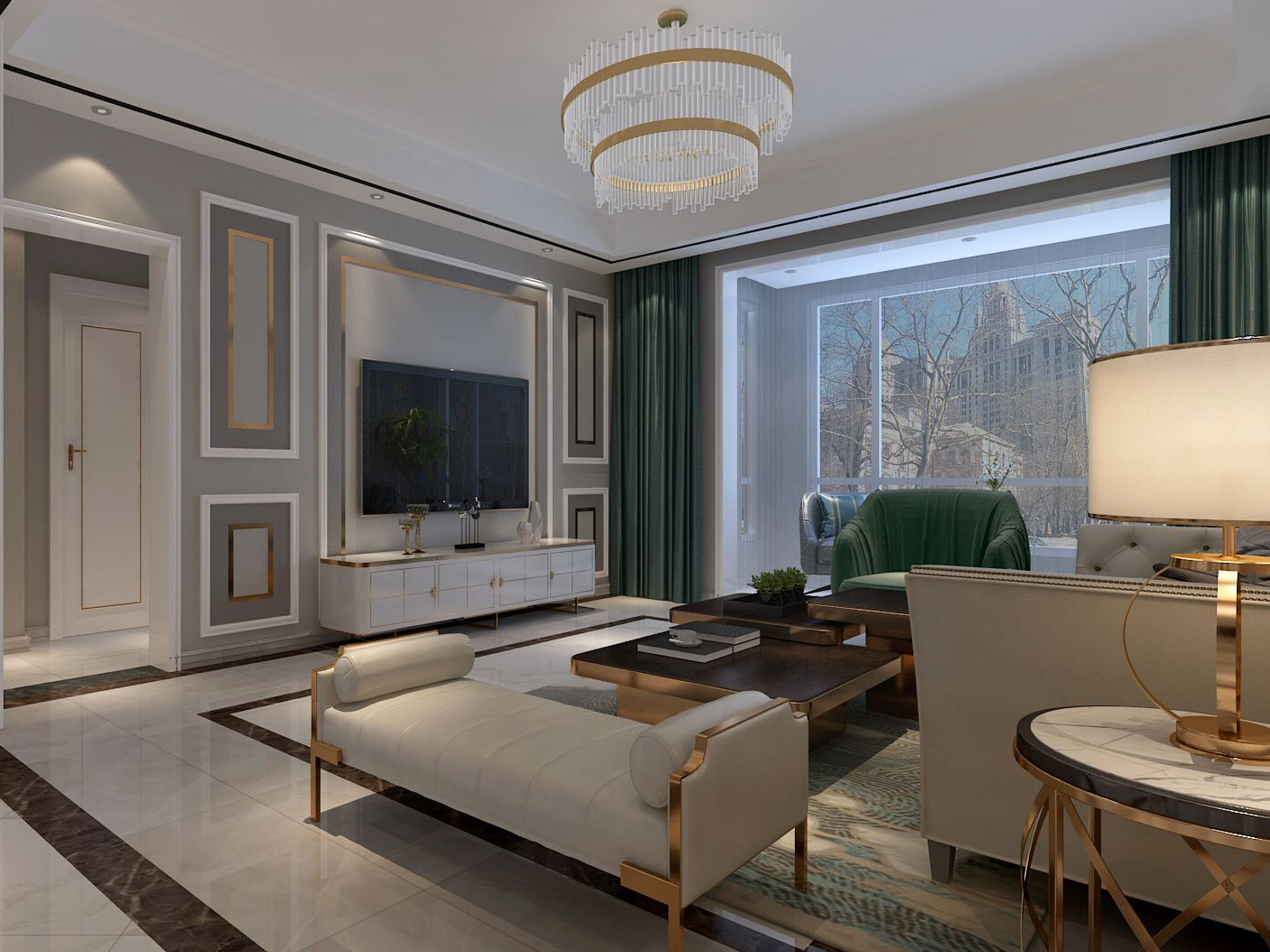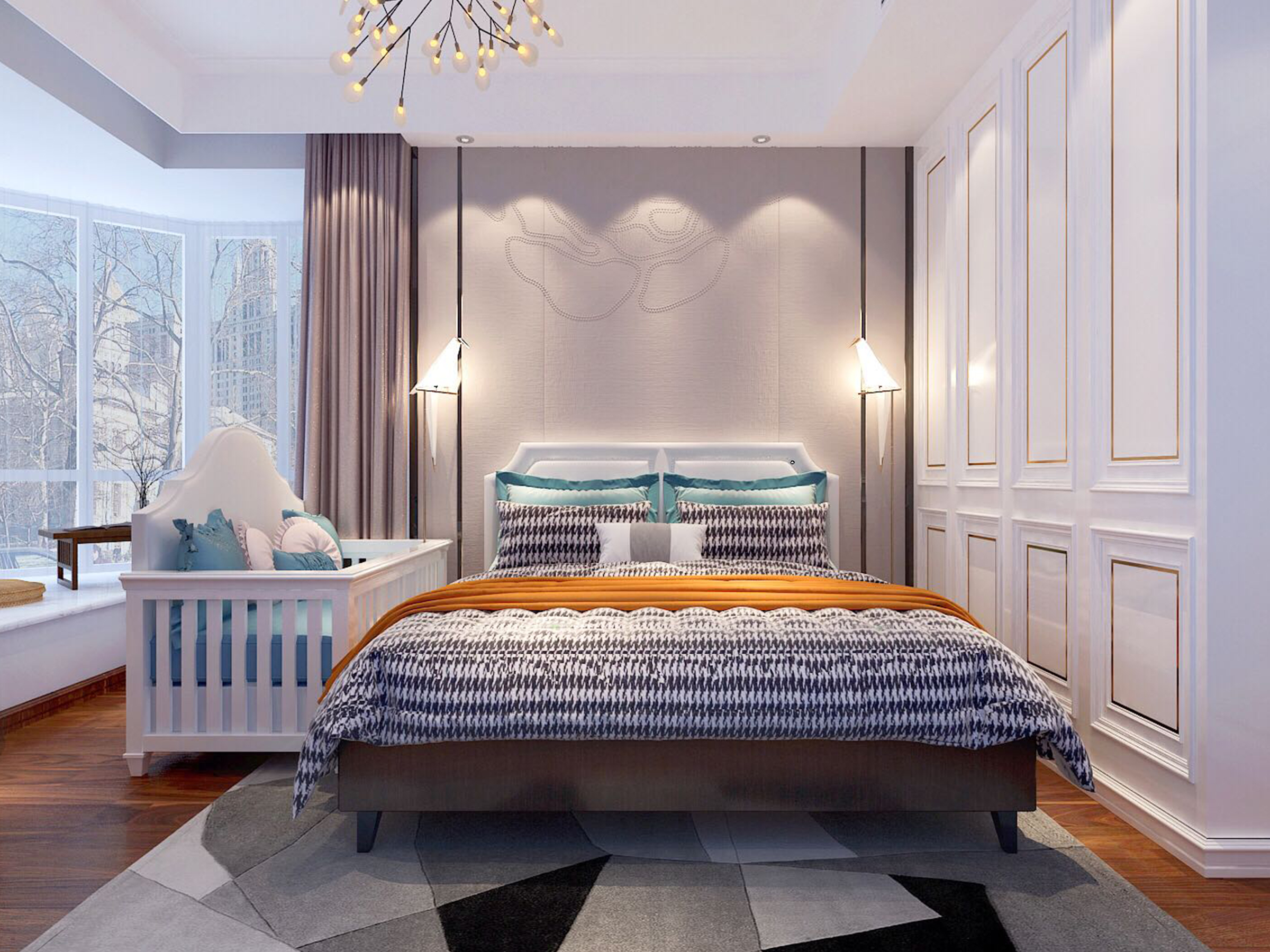 明亮輕快的色調,配以金屬裝飾線條,體現輕奢味道。