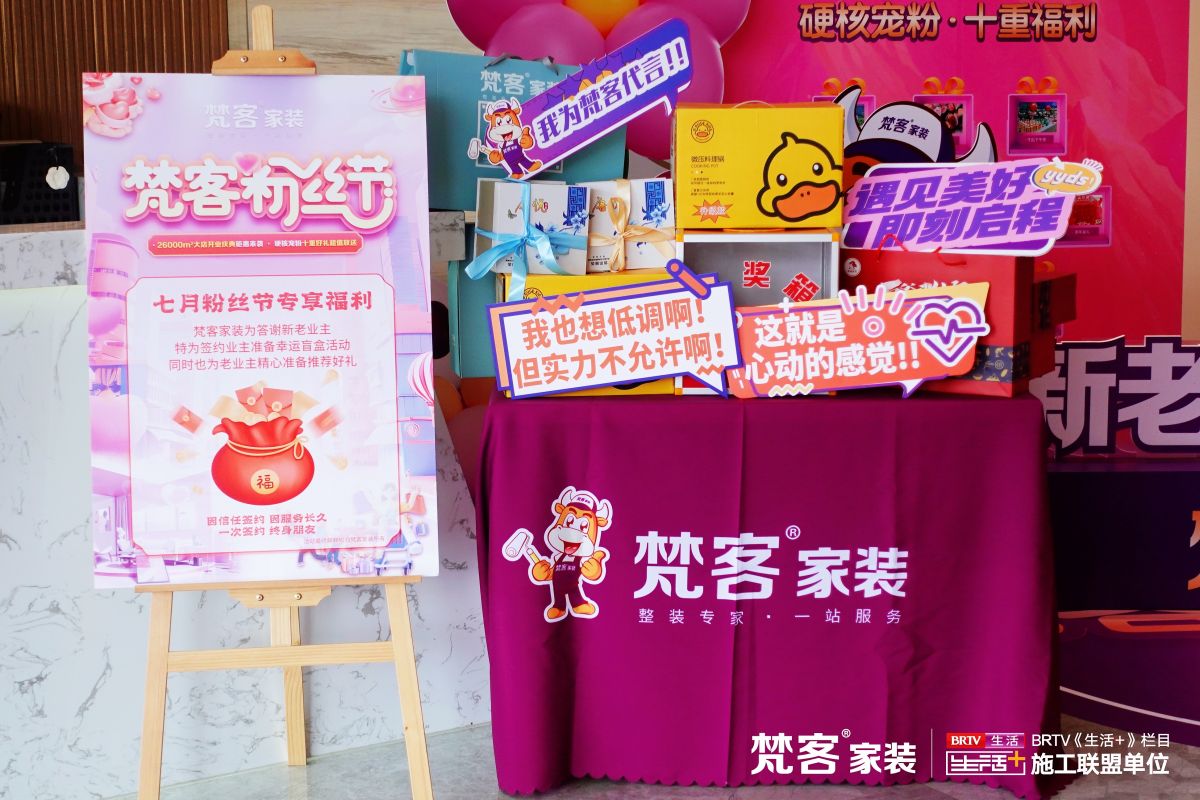 七月,梵客家裝迎來一年一度寵粉月,不僅提升福利豪禮,選購體驗也更加人性化,再次體現一家大型家居裝飾企業的綜合實力。通往感恩回饋的大門由浪漫粉開啟,到店伴手禮、幸運盲盒、游戲抽獎、砸金蛋贏大獎…都會送上。硬核寵粉讓行動變得更有底氣。