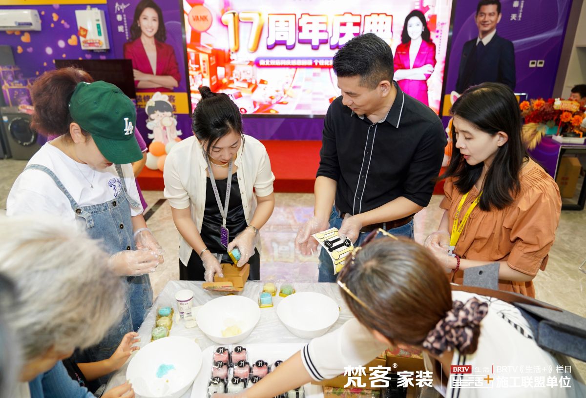 在梵客家裝奧體中心店,第二場中秋活動現場依然熱鬧無比,奧體中心店負責人劉總詳細為大家介紹了活力細則及優惠政策,梵客家裝的老朋友秦天老師也到場送祝福,并和大家一起做月餅慶祝佳節。