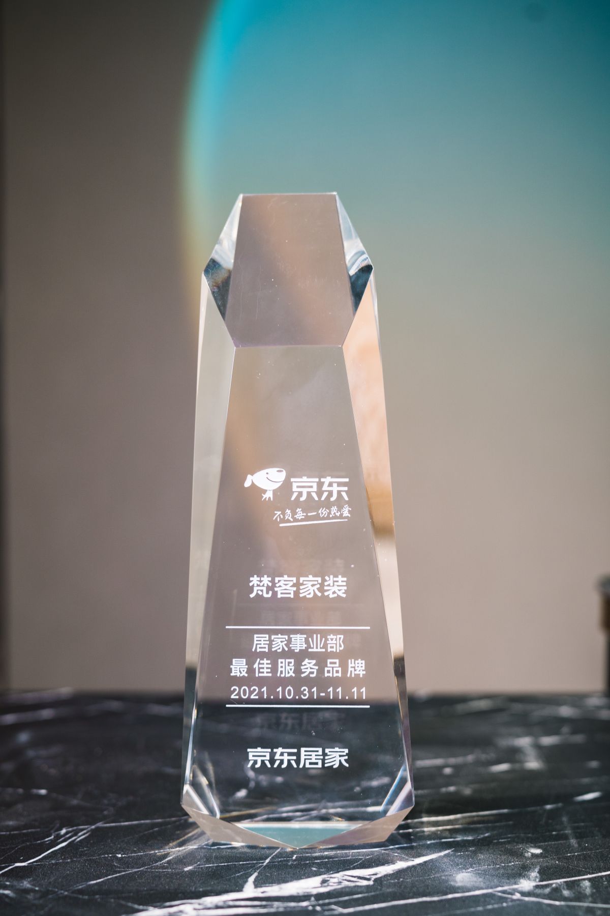 年初,梵客家裝收獲一枚獎杯,由【京東居家】頒發(fā)的最佳服務(wù)品牌獎。沉甸甸的“水晶”獎杯在燈光下閃爍熠熠光彩,仿佛是對過去一年成就的肯定,也是對未來的期待與激勵。