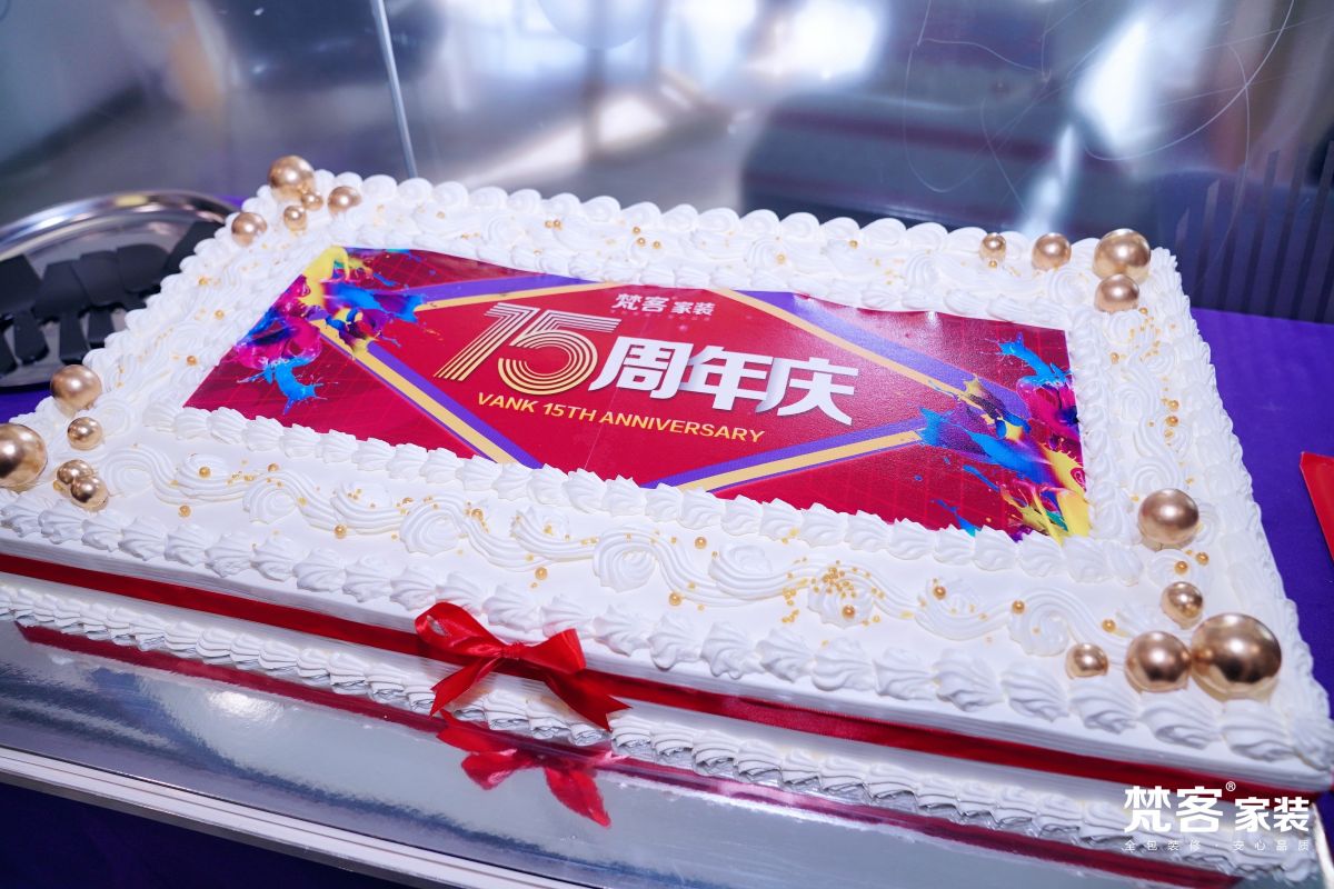 終于,迎來了最激動人心的時刻,隨著音樂的響起,定制的寫有梵客家裝15周年慶字樣的巨型蛋糕被緩緩?fù)粕衔枧_,這一刻,祝福已無法表達(dá)所有思緒,留給大家更多的是感動,以及對未來滿腔熱情的期許。所有人一起唱響生日的祝福歌,許下宏偉的心愿,共同開啟象征著梵客15周年的美味蛋糕,分享15周年的快樂與甜蜜。