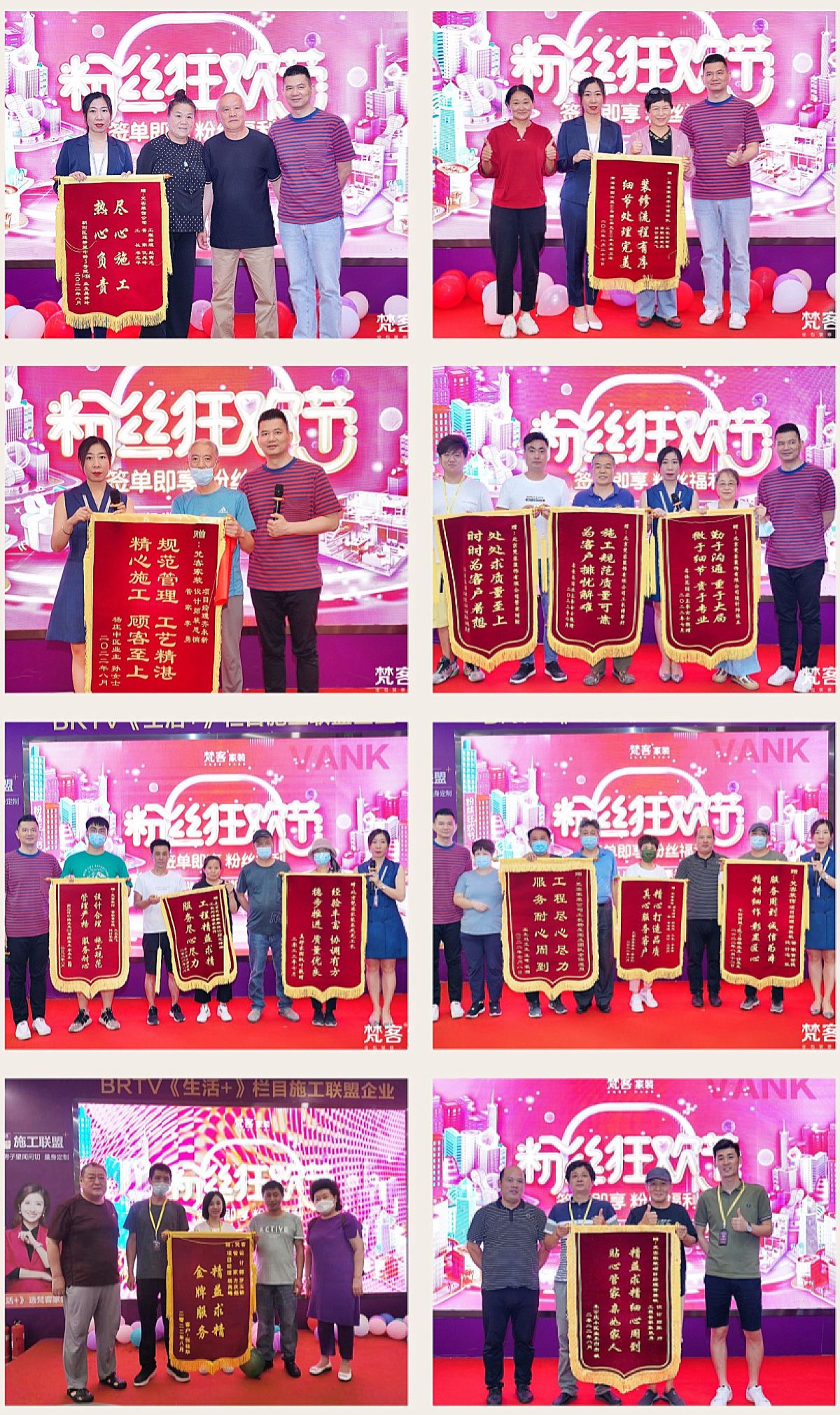 8月《粉絲狂歡節(jié)》,梵客家裝來寵粉了,再度啟動全年力度最大的優(yōu)惠,感謝今天回家的老客戶,一枚枚錦旗,濃濃家裝情。粉絲真摯的發(fā)言,不僅對梵客的服務(wù)表示感謝,還對家裝設(shè)計、產(chǎn)品性能、工程質(zhì)量等多方面都給予高度肯定。