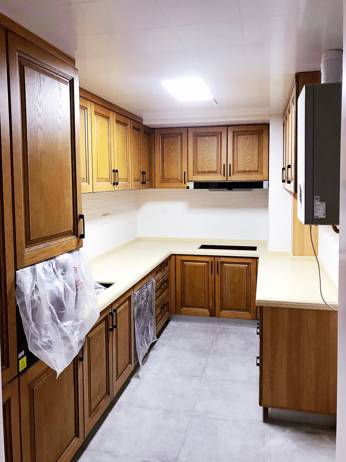↑ 廚房,依據空間布局設計的U型櫥柜,擁有獨立備餐空間,洗滌、備餐、烹飪一氣呵成,下廚高效便捷。吊柜與地柜雙向收納,大大擴充了儲物功能。
